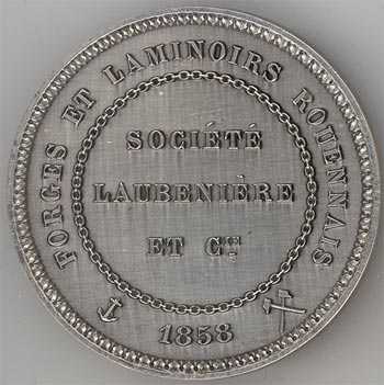 Revers : Vue en perspective d'un laminoir. FONDERIE DE