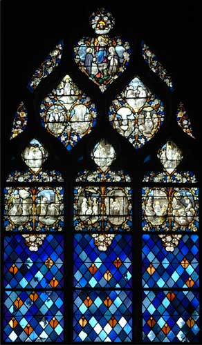 Baie 15 Vitrail du Rosaire 1887 (Duhamel-Marette). Il s'agit du seul vitrail du XIXe siècle ayant échappé à la destruction pendant la seconde guerre mondiale.