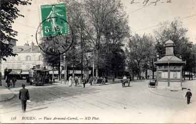 | Histoire : | Nom donné vers 1900 à la petite place triangulaire qui se trouvait sur le boulevard, en bas de la rue Verte. Une statue d'Armand Carrel ornait le centre de la place. Le nom a été supprimé pour éviter une confusions avec la rue Armand Carrel |