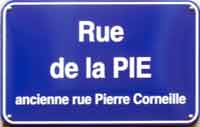| Histoire : | Vient d'une enseigne. C'est dans cette rue qu'habitaient les frères Corneille. A la fin du XIXe siècle, on lui avait donné de Nom de Rue Pierre Corneille. |