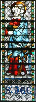 Il est ici curieusement représenté avec une épée, et non un bâton de